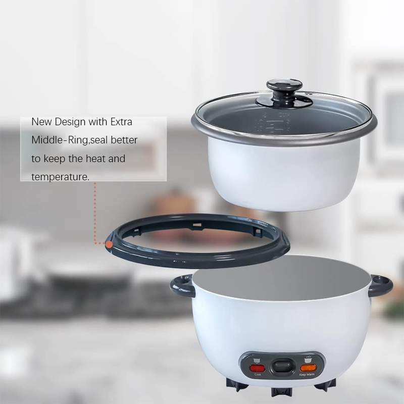 Cuiseur à riz blanc de 1 litre avec couvercle en verre antiadhésif Pot à céréales/avoine Petit mini cuiseur à riz d'une capacité de 2L