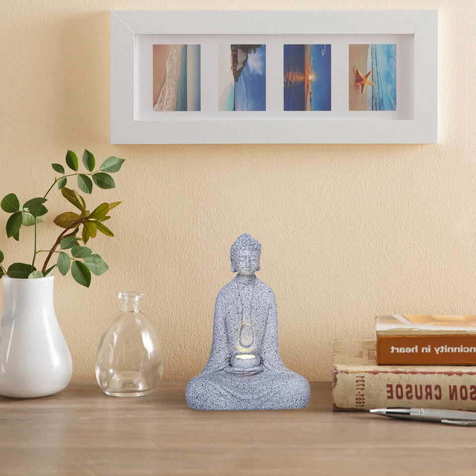 Statue de Bouddha avec lumière, petit ornement de table, décoration sereine pour la maison, bureau, salon et salle de thé, 1 pièce
