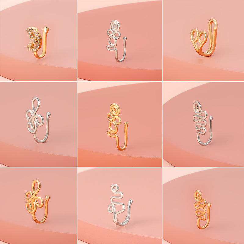 1 PC Faux piercing en cuivre pour le nez, forme cœur, étoile, couronne, à clipser, pour le nez et l'oreille, manchette d'oreille, cadeau pour femme et fille, bijoux de corps