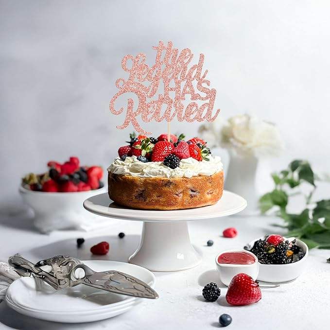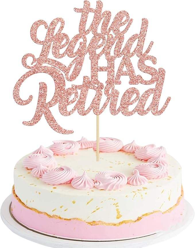 1 pièce Décoration de gâteau Or rose pailleté « La Légende s'est retirée » – Joyeux retraite, adieu la pression, bonjour la retraite