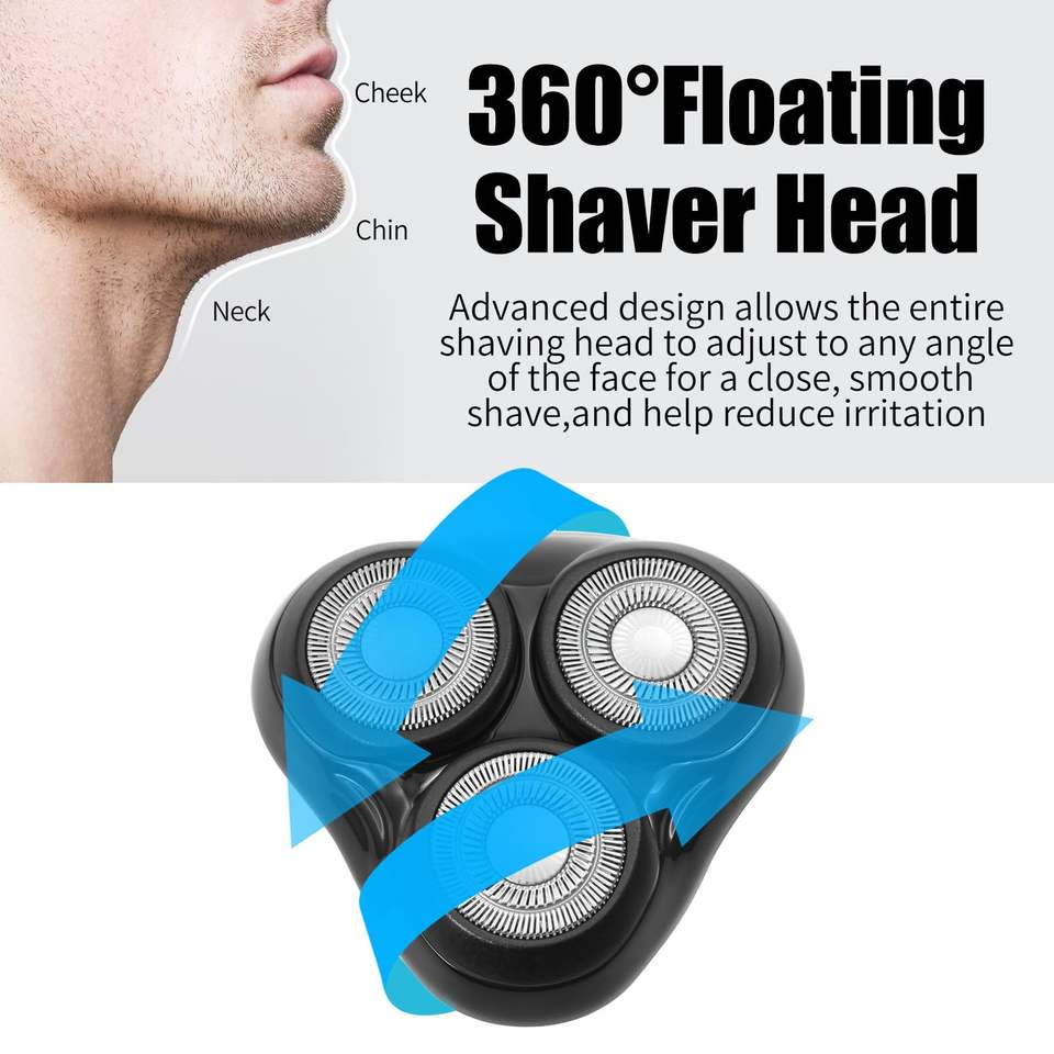 1 Pack de Têtes de Rasoir Rotatives de Remplacement à Trois Lames Compatibles avec les Mini Rasoirs Électriques Noirs pour le Rasage du Visage et l'Utilisation en Camping-Car