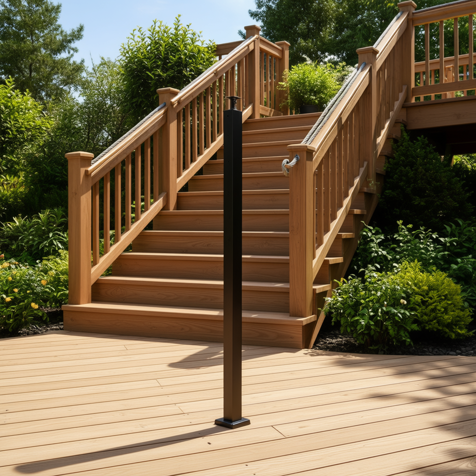 Poteau de garde-corps en acier inoxydable 42x1x2 pouces pré-percé pour terrasse et escalier, design moderne