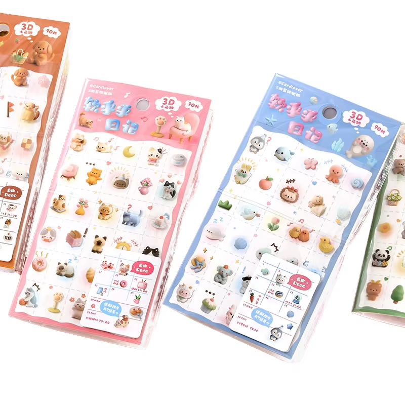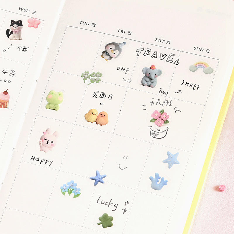 1 paquet de trois autocollants pour animaux de compagnie, série journal intime, illustrations mignonnes de petits animaux, autocollants découpés à la forme, impression, collage pour carnet