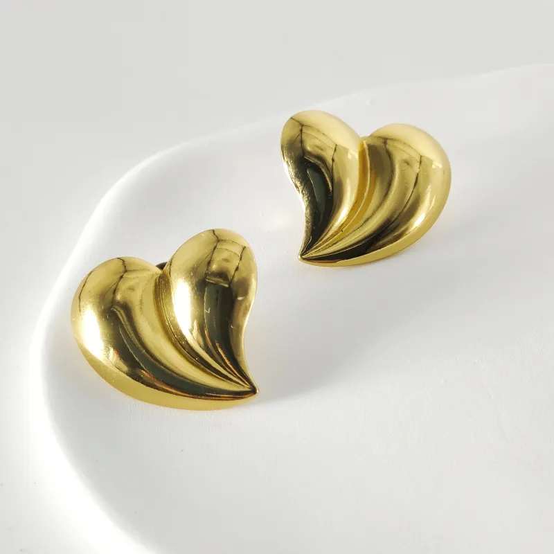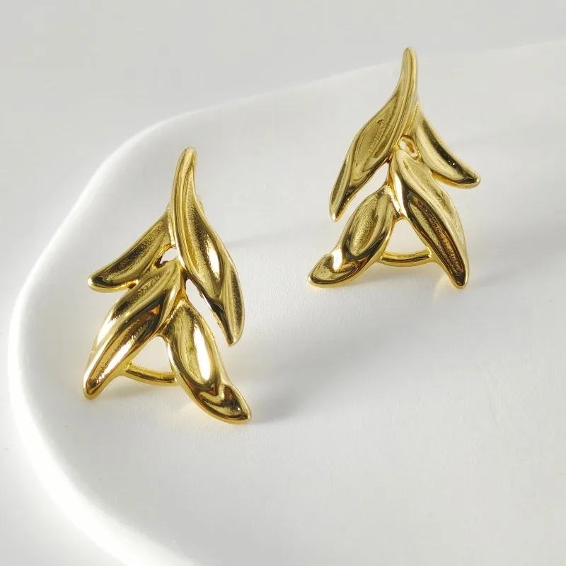 1 paire de clous d'oreilles décontractés en plaqué or 18 carats style IG en acier inoxydable 304 en forme de feuille d'érable et de cœur.
