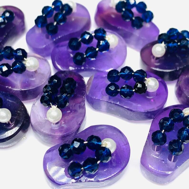 1 paire de pierres précieuses en améthyste naturelle en forme de pantoufle, charmes en pierre précieuse sculptés à la main, pierres d'améthyste sculptées en vrac