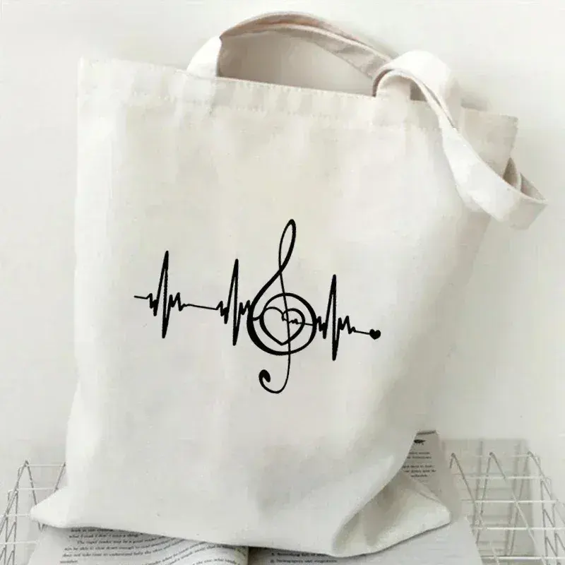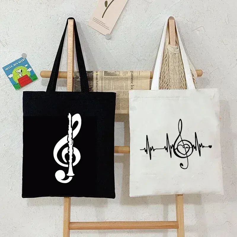 Sac fourre-tout en toile à motif clé de sol pour clarinette, 1 pièce, sac à bandoulière réutilisable personnalisé pour les amateurs de musique