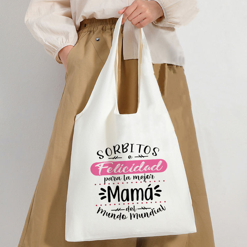 I Have A Best Mom in The World-Sac fourre-tout en toile avec motif imprimé, sac à bandoulière personnalisé pour les mères de voyage, 1 pièce