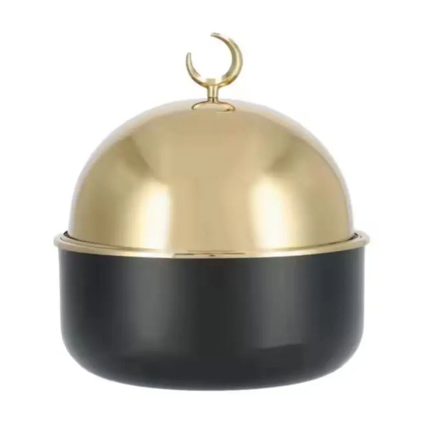 1 pièce Ensemble Plat de service d'hottpot en forme de dôme, en métal noir/laiton, de luxe arabe, découpé au laser