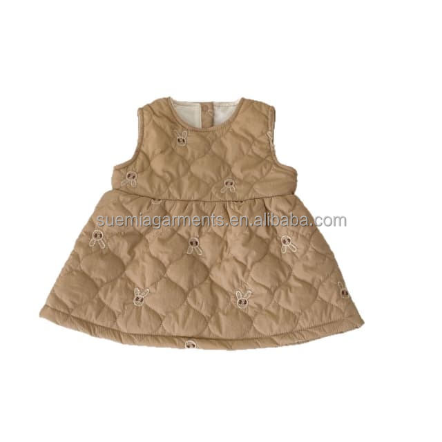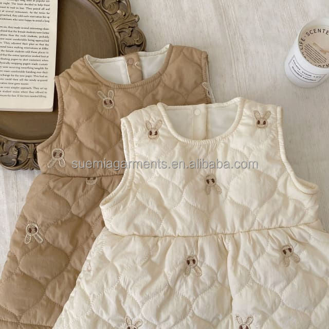 1 pièce étiquette personnalisée lapin en nylon automne hiver bébé vêtements pour bébés col rond sans manches filles robe pour tout-petits