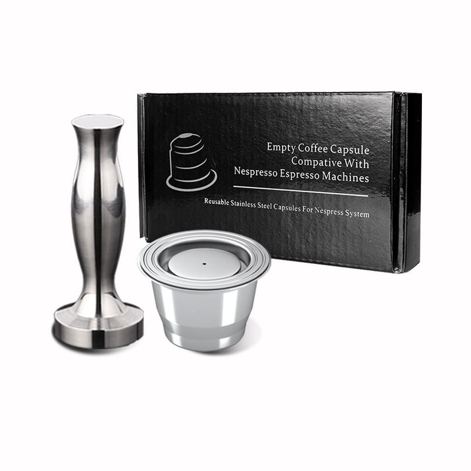 1 capsule de café réutilisable en acier inoxydable pour Nespresso, 1 tamper inclus