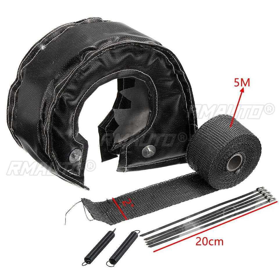 1 ensemble de couvertures thermiques pour turbo de course T4 + enveloppe pour tuyau d'échappement et collecteur d'échappement Rouge / Noir / Bleu / Titane