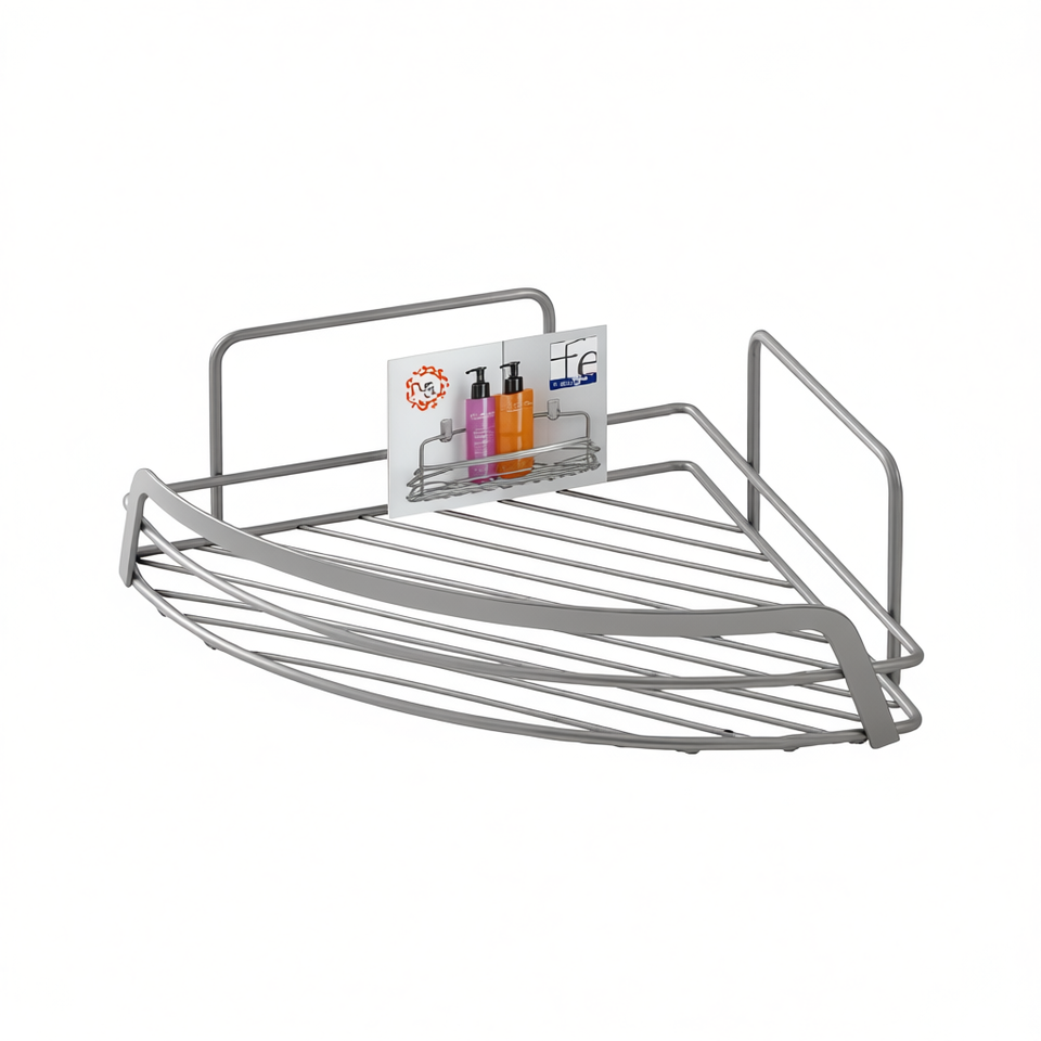 Étagère d'angle à 1 niveau, finition chrome satiné, longueur 22 cm, étagère de rangement pour salle de bain