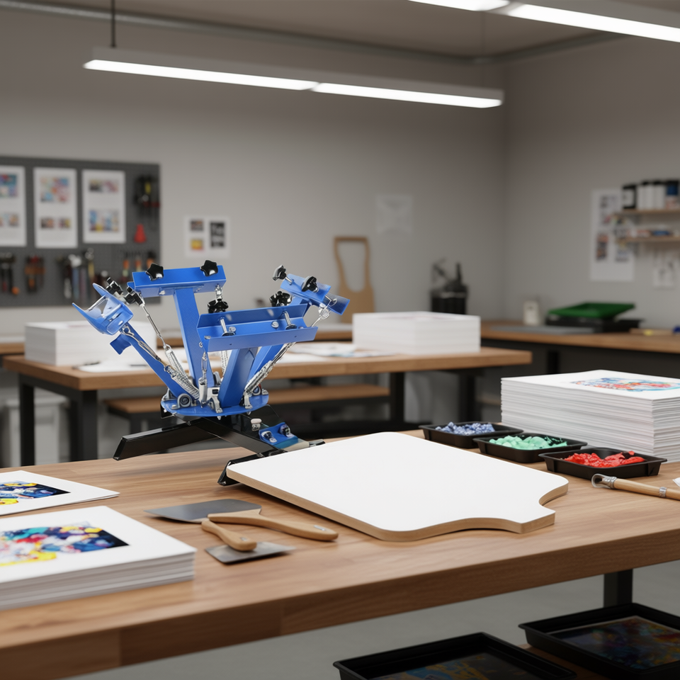 Presse d'impression sérigraphique 4 couleurs 1 station 450x550 mm avec support réglable et fonctionnement manuel pour sérigraphie