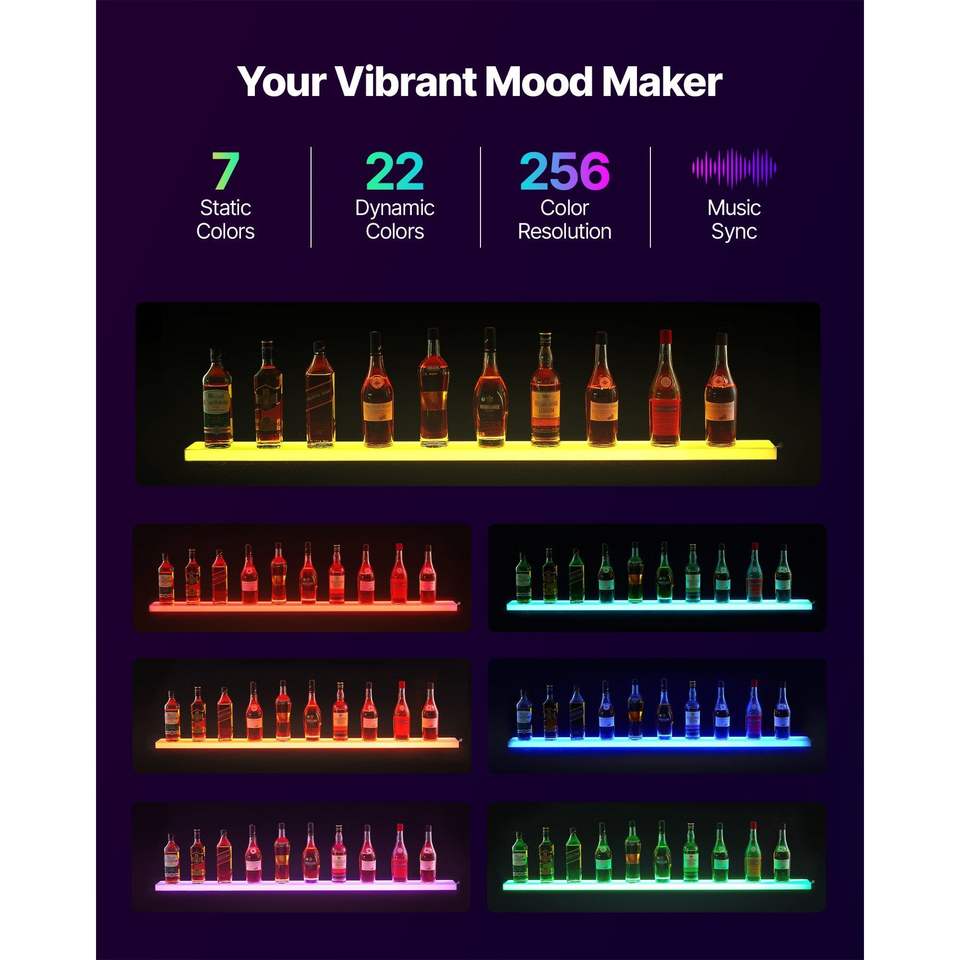 1-Tier 60 Inches LED Lighted Whiskey Rack USB Supported Illuminated Home Bar Shelf RF Remote LED Lighted Liquor Display Shelf