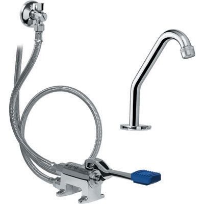 Kit de robinet à pédale externe à montage au sol avec tuyau flexible et bec pivotant pour salle de bain
