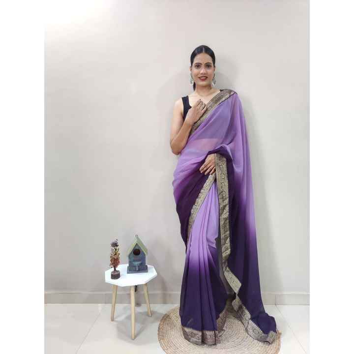 1 Minute Saree With Unstitched Blouse Purple