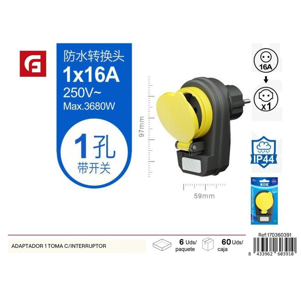 Adaptateur 1 prise avec interrupteur-Accessoires électriques