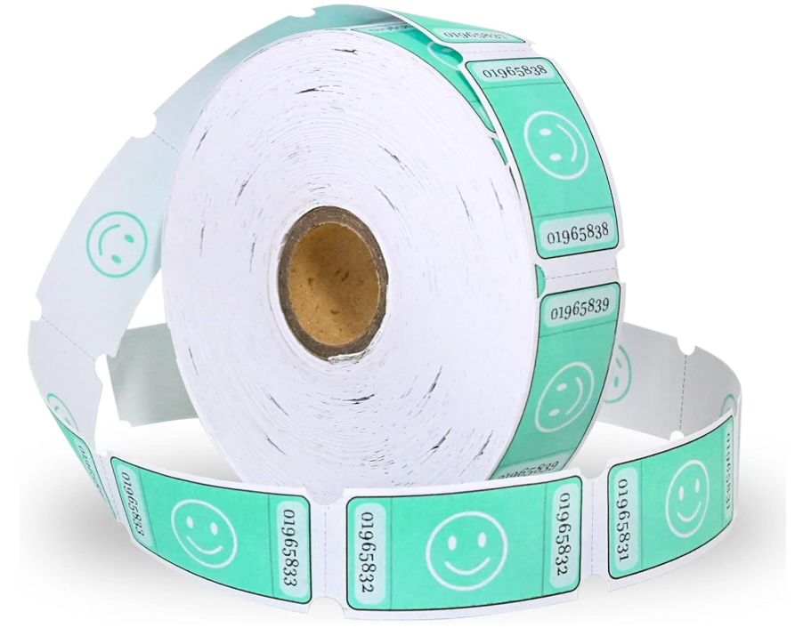 Billets de tombola perforés 1"x2" avec visage souriant, faciles à déchirer, dos inscriptible, numérotés consécutivement pour événements