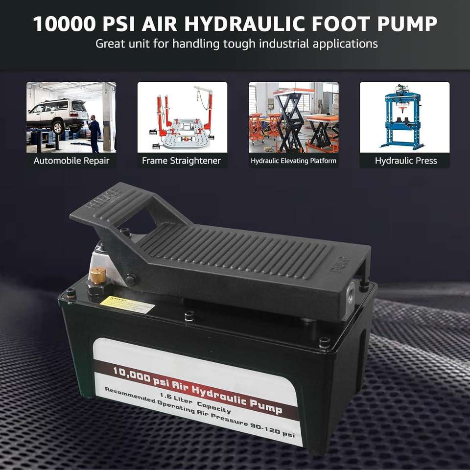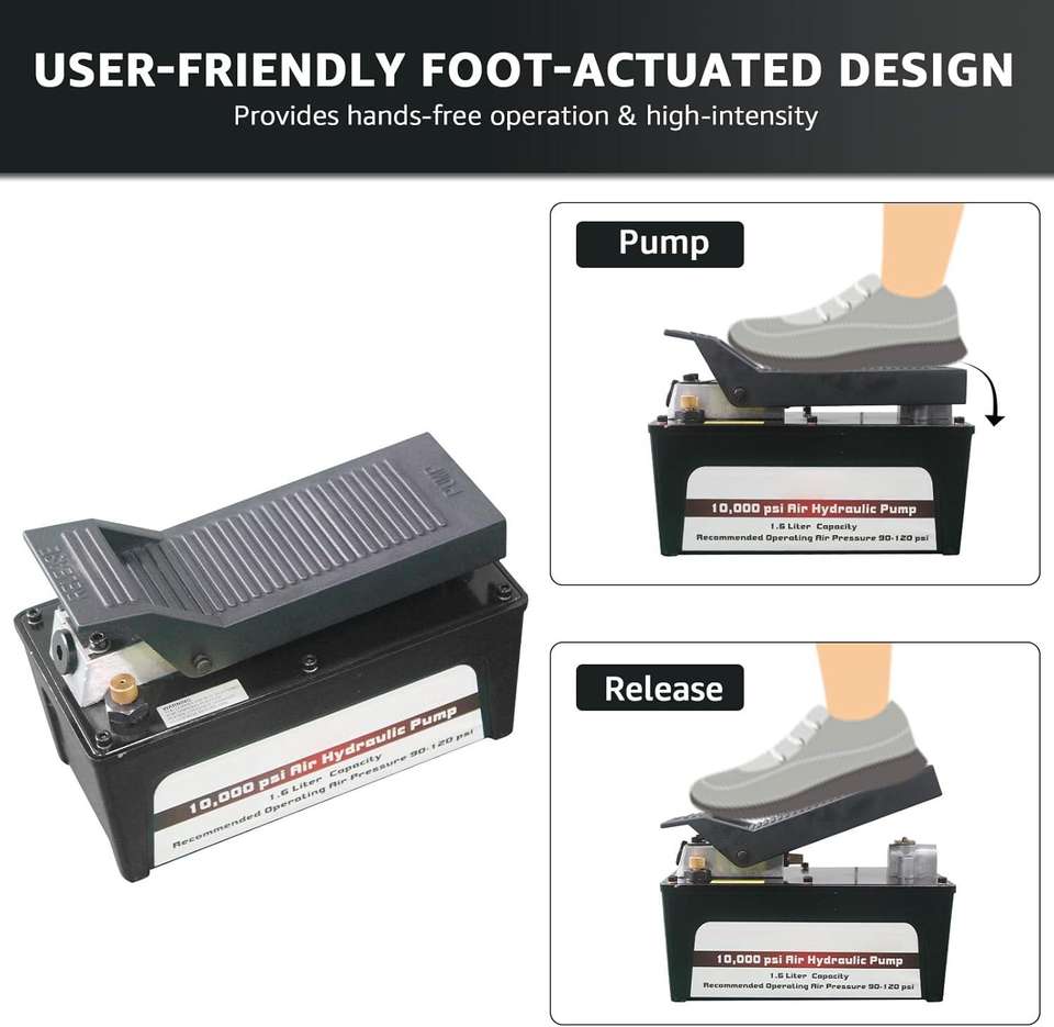 Pompe hydraulique pneumatique à commande au pied 10 000 PSI avec réservoir de 1,2 gallon pour vérins à simple effet