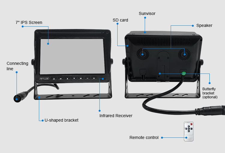 Moniteur HD 10.1 "pour Mini TV lecteur vidéo de voiture TFT LCD pour caméra de recul système de sécurité à domicile avec haut-parleur BNC/AVI/VGA/HD & MI