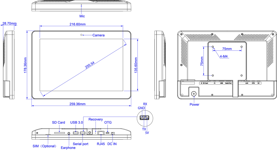 Nom du produit:Écran LCD tactile capacitif RK3566 de 10,1 pouces, 10 points, Ethernet Android