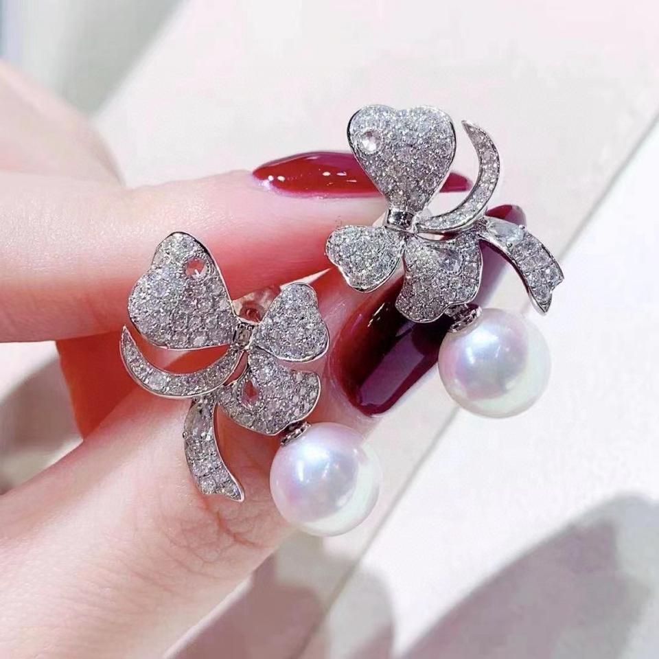 10-11MM Strong Light Flawless 925 Pure Silver Fine Dangle Earrings New Light Luxury Natural Gold Pearl Rock Sugar Versatile