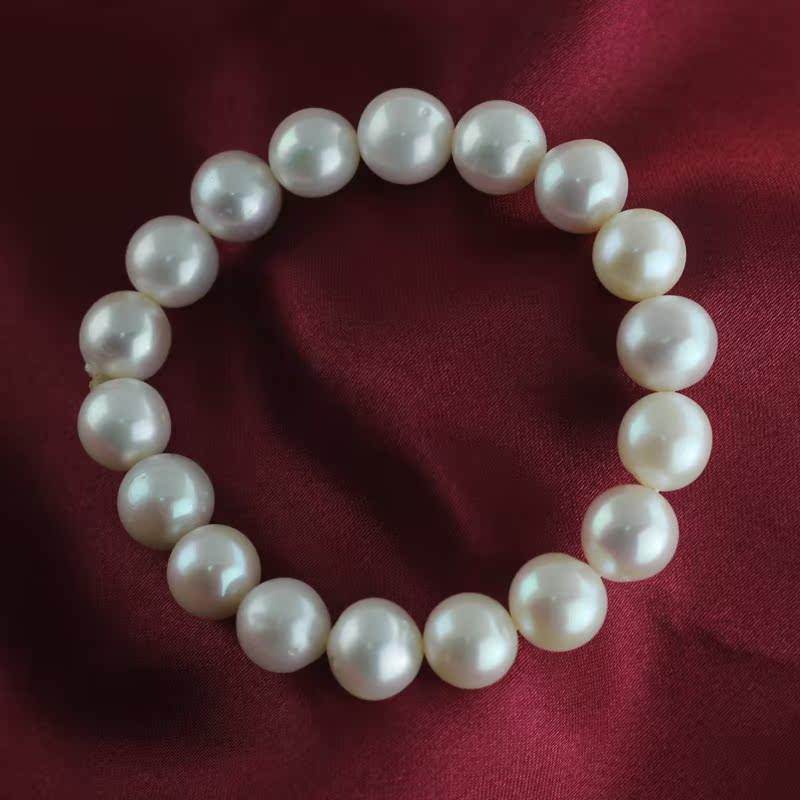 Bracelet en perles d'eau douce rondes de 10-11 mm, facile à porter, avec de petites imperfections, bande élastique blanche