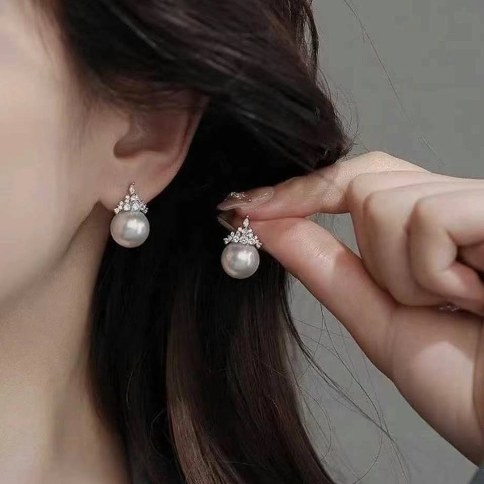 10-11mm Natural Freshwater Pearl Earrings Round Strong Light Edison Style S925 Silver Fine Dangle 'Ice and Snow Queen' Design