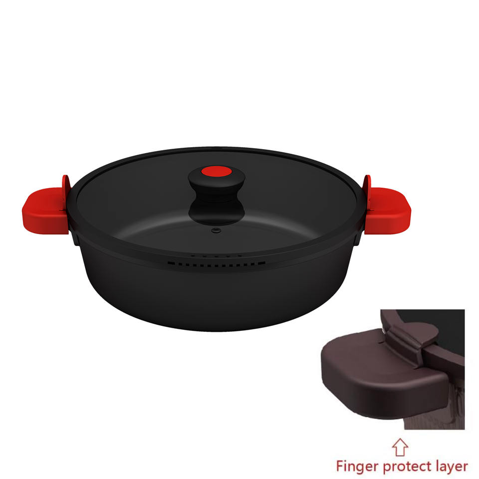 Poêle à frire profonde antiadhésive de 10/12 "avec deux poignées amovibles en silicone Marmite peu profonde Poêle sûre pour lave-vaisselle 2 en 1