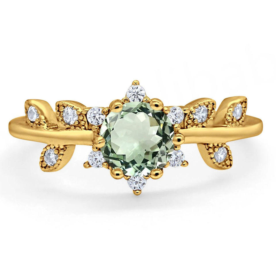Bague de fiançailles en or jaune:Bijoux en améthyste verte