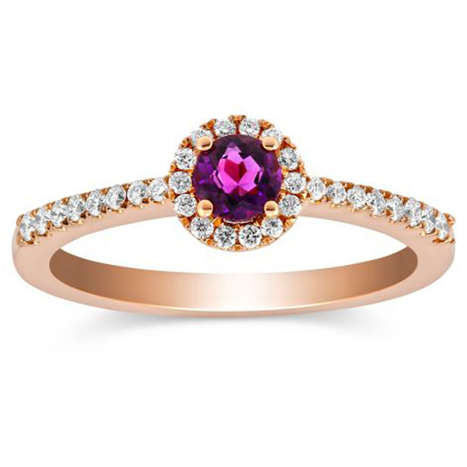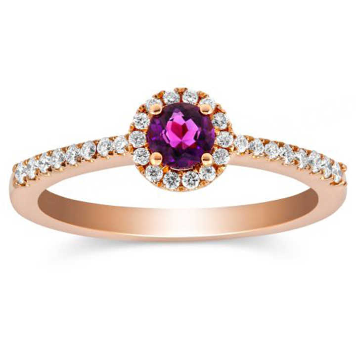 Diamond Halo Engagement Ring:Natural Amethyst Ring
