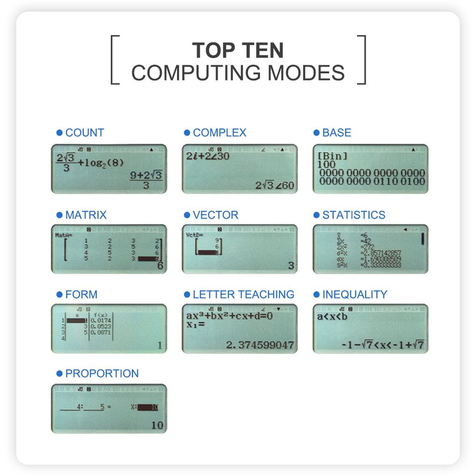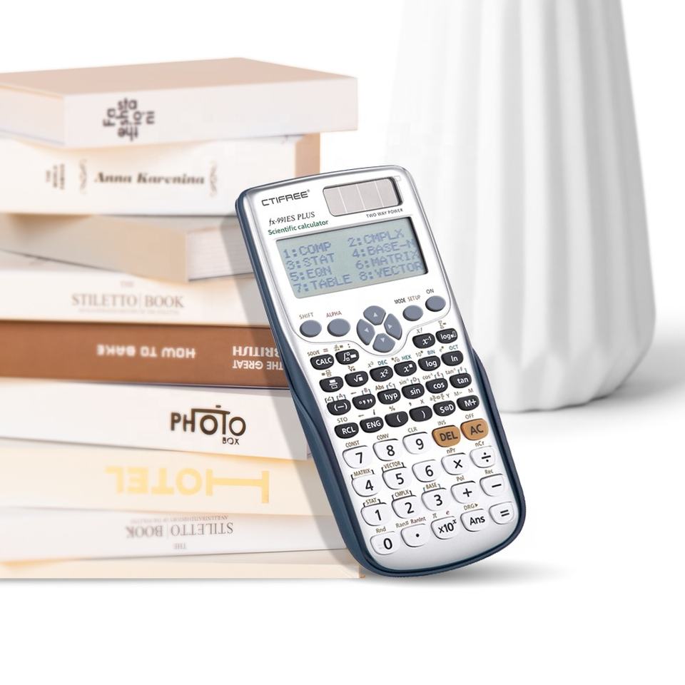Calculatrice scientifique électronique à 10 + 2 chiffres avec affichage à 2 lignes et 417 fonctions à piles en plastique