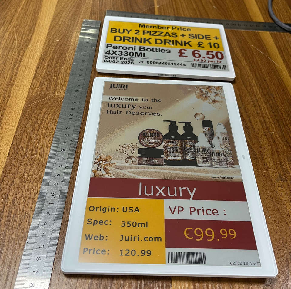 Étiquettes électroniques d'étagère (ESL) grand format 10,2 pouces avec écran E-Paper E Ink, système ESL, 4 couleurs, modules EPD E-Paper et pilote pour usage en entrepôt