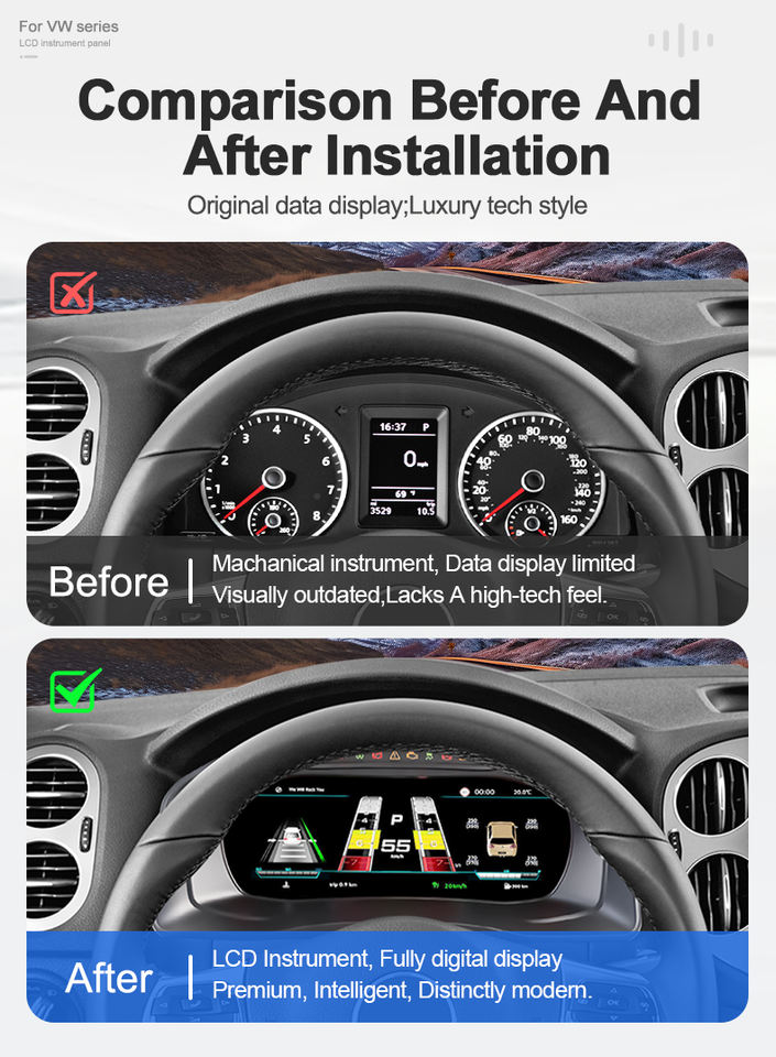 Écran d'instrument LCD HD 10,25 pouces pour VW Tiguan 2010-2017, remplacement du tableau de bord numérique