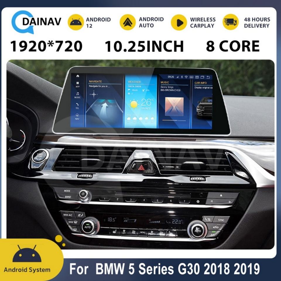 Autoradio 10,25 pouces pour BMW Série 5 G30 G31 G38 2018 2019 Android 13 Navigation GPS Stéréo Lecteur multimédia vidéo