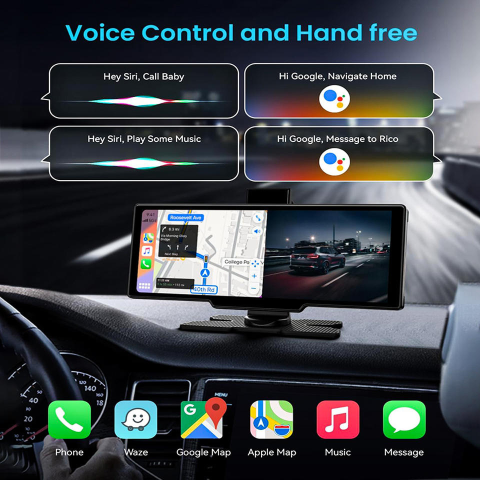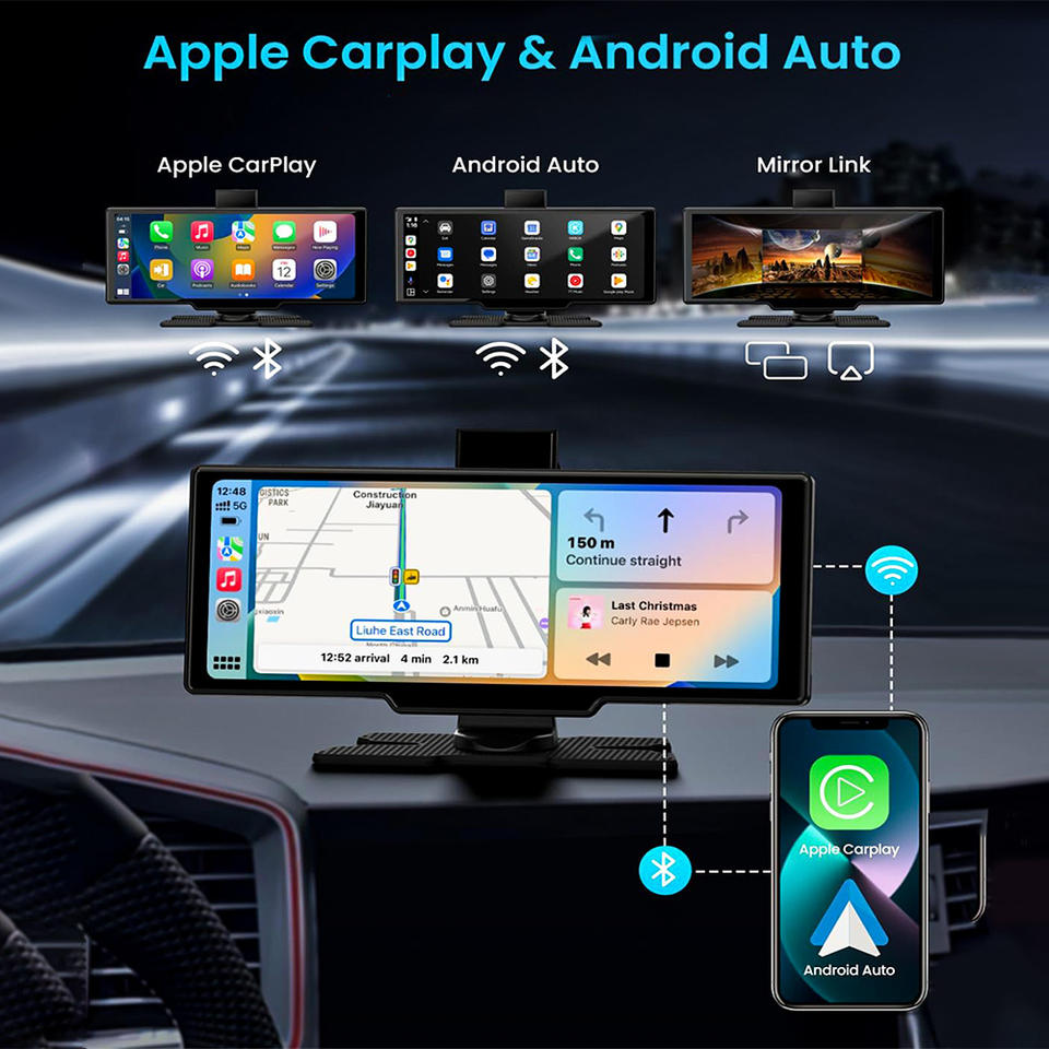 Moniteur portable IPS 10.26 "avec caméra de bord avant + arrière sans fil Carplay écran tactile Android Auto pour autoradio universel intelligent