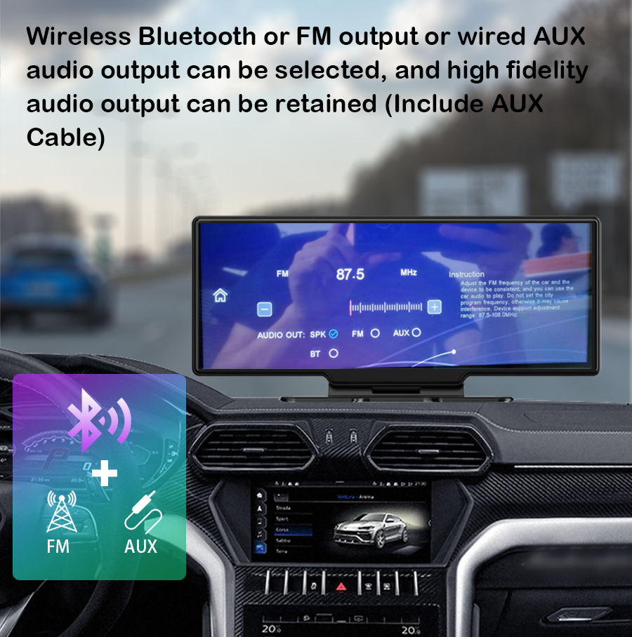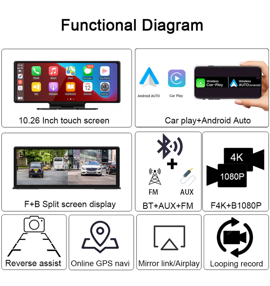 10.26 Inch 4k Dashcam Camera with Wireless CarPlay Android AUTO Multimedia Audio Car Dvr Camera Video Recorder Monitor