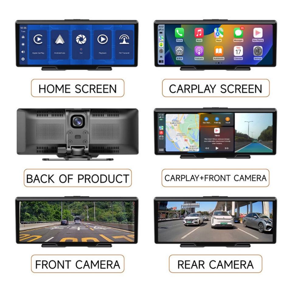 Caméra de tableau de bord universelle pour voiture 10,26 pouces, multimédia, Android Auto, WiFi sans fil, AUX, enregistreur vidéo FM, caméra de recul