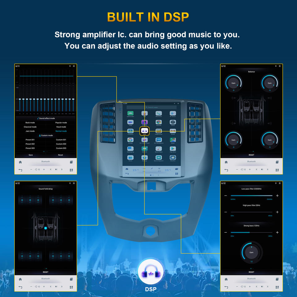 Stéréo, DSP, CarPlay, Lien de miroir, Android auto, Écran partagé, Gestionnaire de fichiers, Volant de voiture de Contrôle