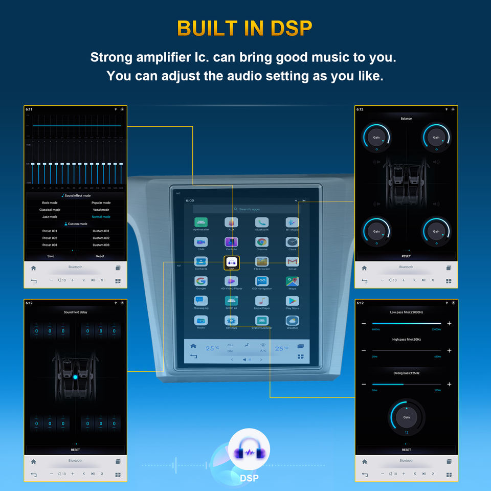 Stéréo, DSP, CarPlay, Lien de miroir, Android auto, Écran partagé, Gestionnaire de fichiers, Volant de voiture de Contrôle