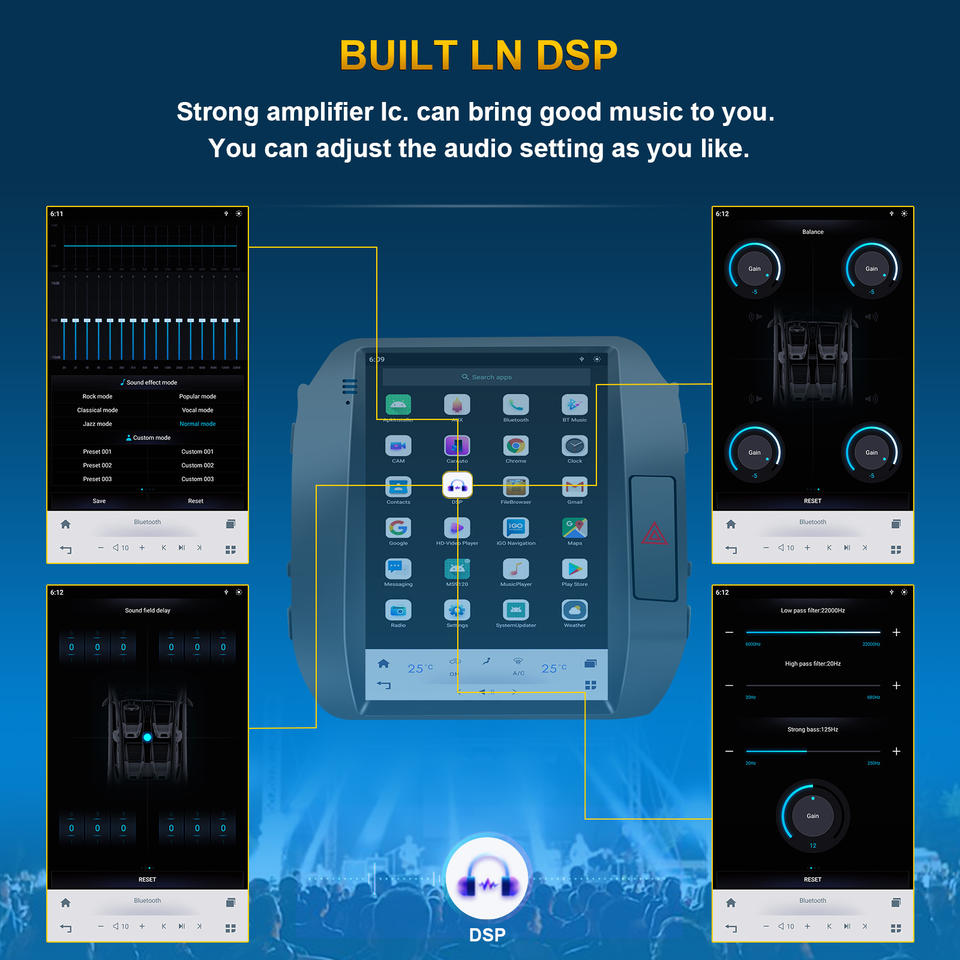 Stéréo, DSP, CarPlay, Lien de miroir, Android auto, Écran partagé, Gestionnaire de fichiers, Volant de voiture de Contrôle
