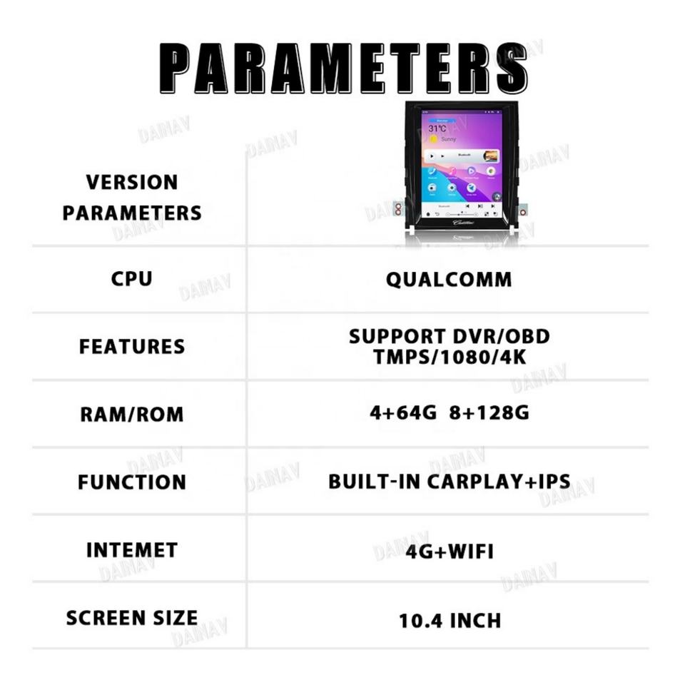 CarPlay, Android auto, Bluetooth-activé, Intégré DSP, MP3/MP4, Écran tactile, Visionneuse photo, Radio Tuner, Télécommande, Guidage vocal, Commande au Volant, Écran partagé, Aide à l'inversion, Multimédia Soutenu, Microphone Intégré, App download from play storeFonction