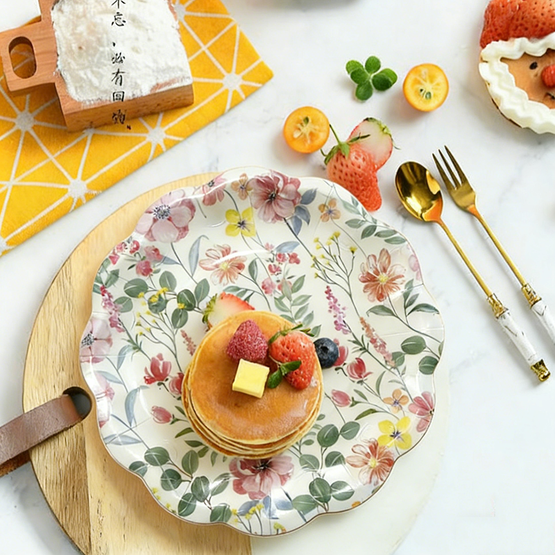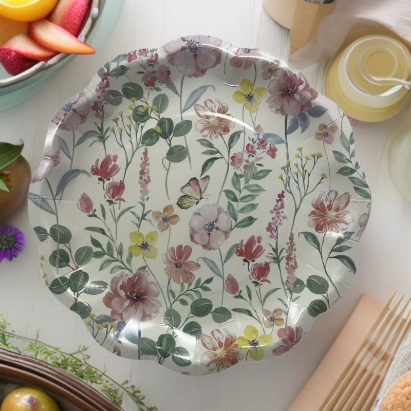 Assiettes en papier jetables à motif floral, durables, pour la décoration de fêtes, mariages, dîners à domicile, 10,5 pouces de diamètre, 300 g, 16 pièces par sac