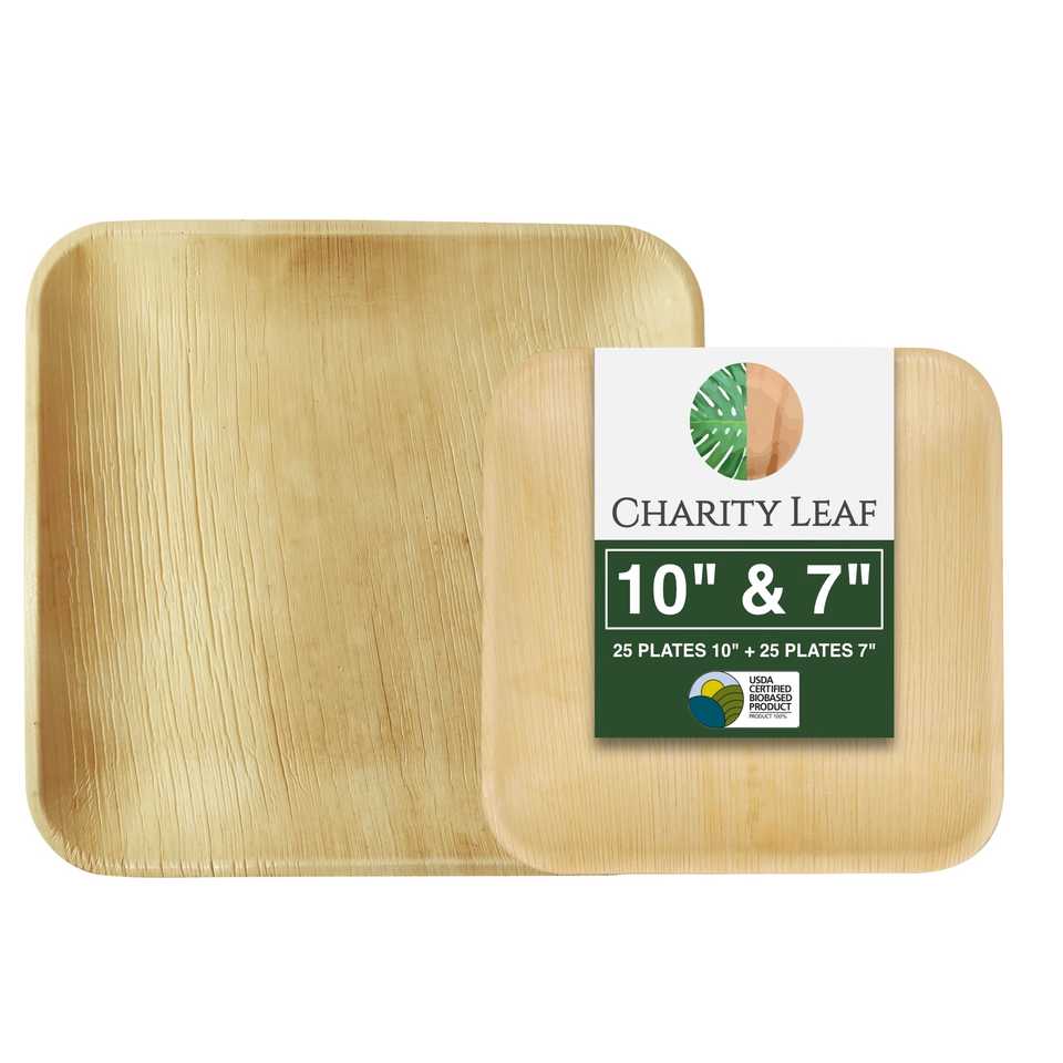 Ensemble de 10 et 7 assiettes carrées en feuilles de palmier naturelles