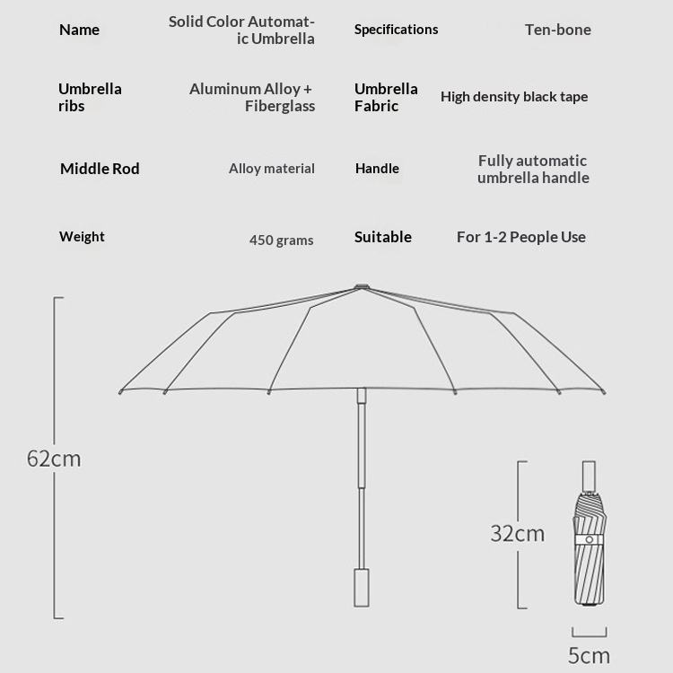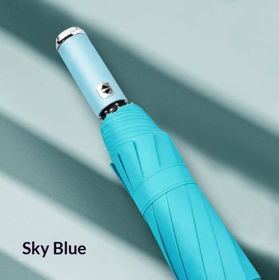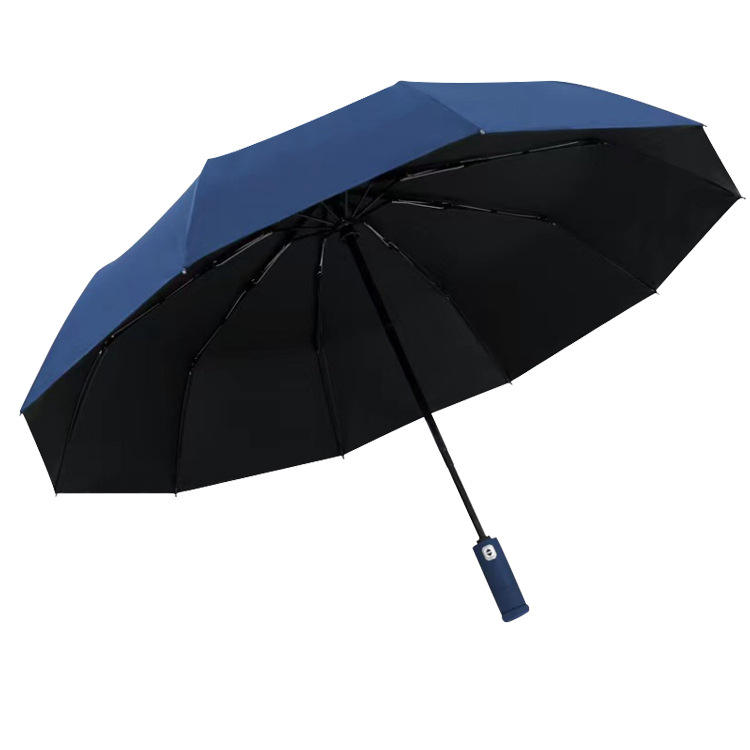 Parapluie pliant professionnel à 10 baleines, pliable en trois sections, avec lampe torche LED intégrée, protection solaire et poignée en caoutchouc noir