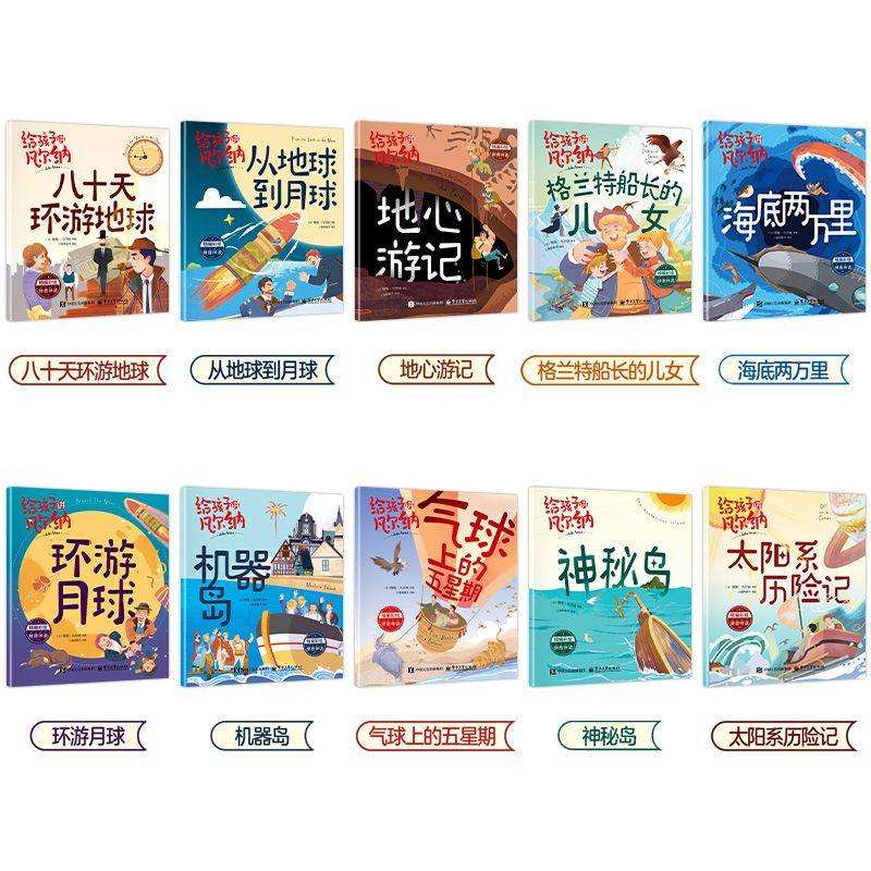 Ensemble de 10 livres pour enfants, les chefs-d'œuvre de la science-fiction de Jules Verne - Voyages fantastiques imaginaires et livres illustrés, fabriqués en Chine