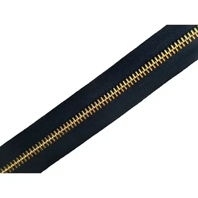 # Chaîne de fermeture éclair continue en laiton (10 pièces) avec dents dorées, couleurs blanc/noir, extrémité fermée pour sacs, vêtements, chaussures - Longueur personnalisable disponible
