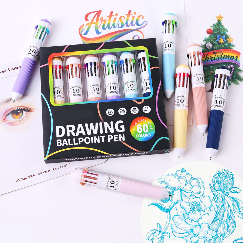 Ensemble de 10 stylos à bille multicolores, design attrayant, pour dessin et journal créatif, personnalisable avec logo