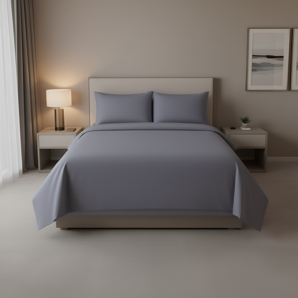 Parures de draps d'hôtel Spring, taille King, en coton, 180 fils, teinture unie, gris Oxford, respirantes, pour toutes les saisons