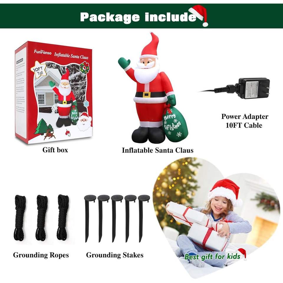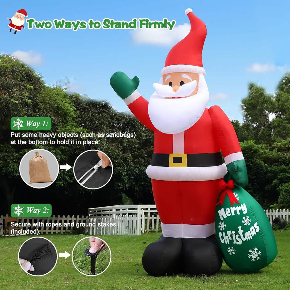 Décoration de Noël gonflable géante de 3 mètres avec Père Noël, grand sac cadeau et lumières LED pour extérieur